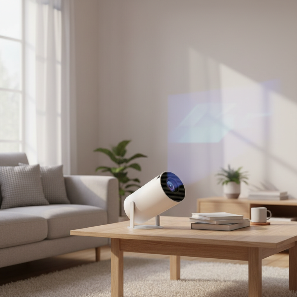 A compact smart projector designed for movie nights, small spaces and easy setup.